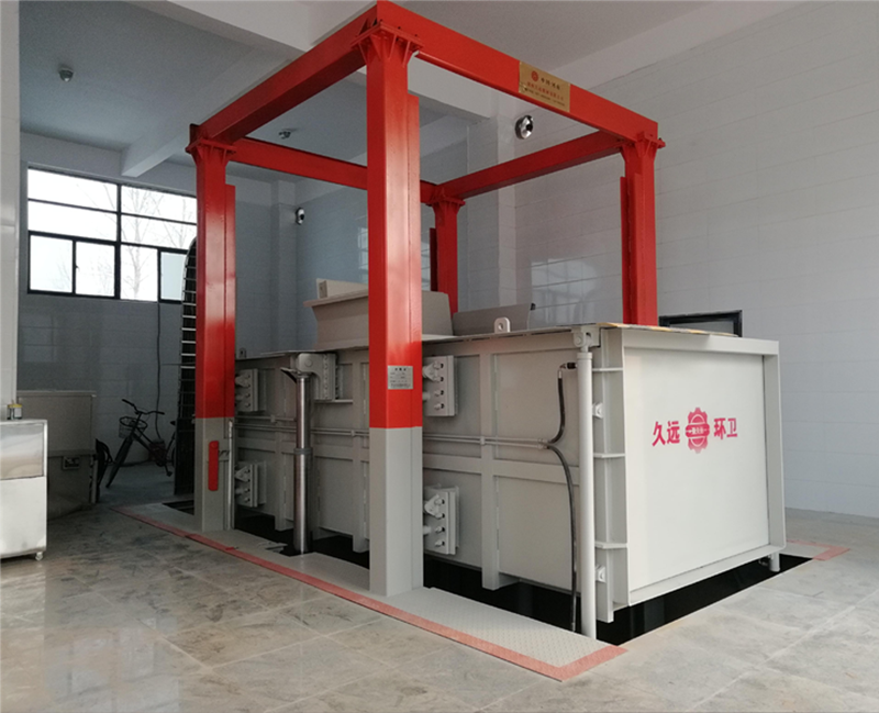 JY-3160 水平式四柱舉升垃圾壓縮設備是將垃圾的卸(出)料、壓縮、儲存集合在一起,利用地下空間將垃圾密閉在箱體內,同時配備噴淋降塵除臭系統和污水處理系統,解決了垃圾在收集、儲存、裝運過程中的污染環境、作業效率低等問題。